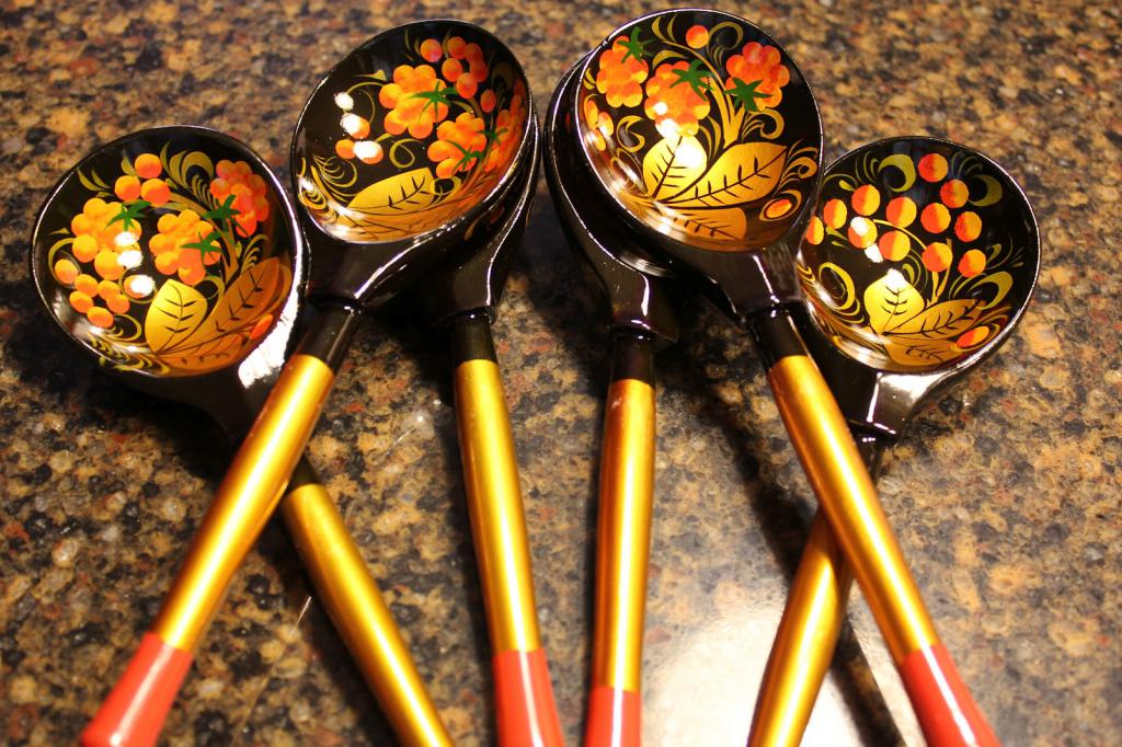 На Руси чаще всеобщим признанием и любовью пользовались деревянные ложки для еды. Хозяин мог «настрогать» таких приборов сколько угодно, для своего многочисленного семейства. Трапезничать такой экологически чистой ложкой было даже удобно: деревянная ложка не жгла рот горячей пищей. Со временем такой прибор стали использовать не только по прямому назначению, его начали украшать росписью и покрывать лаком. Так деревянная ложка постепенно перешла в число русских сувениров. Есть этой залакированной ложкой не станешь, а вот использовать в декоре кухни — отличая идея.