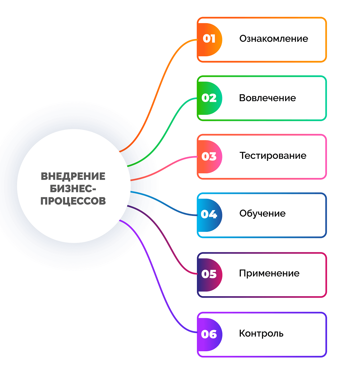 На предприятии может внедряться как обновленный, улучшенный бизнес-процесс, так и совершенно новый. В обоих случаях можно выделить несколько этапов внедрения: