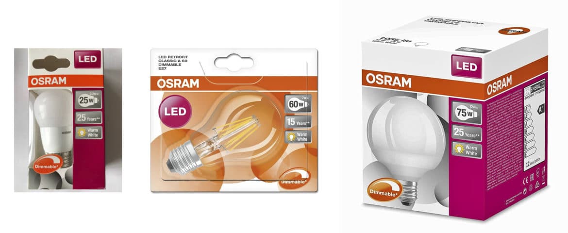 Всемирно известная немецкая компания, специализирующаяся на производстве осветительного оборудования. Светодиодные лампочки, включая диммируемые, Osram выпускает с различной цветовой температурой и цоколями Е14, Е27 (цоколь Эдисона) и G9, G12, GX53. Первые два товара производятся в классической форме шара или свечи, и они служат отличной заменой лампам накаливания в открытых светильниках.