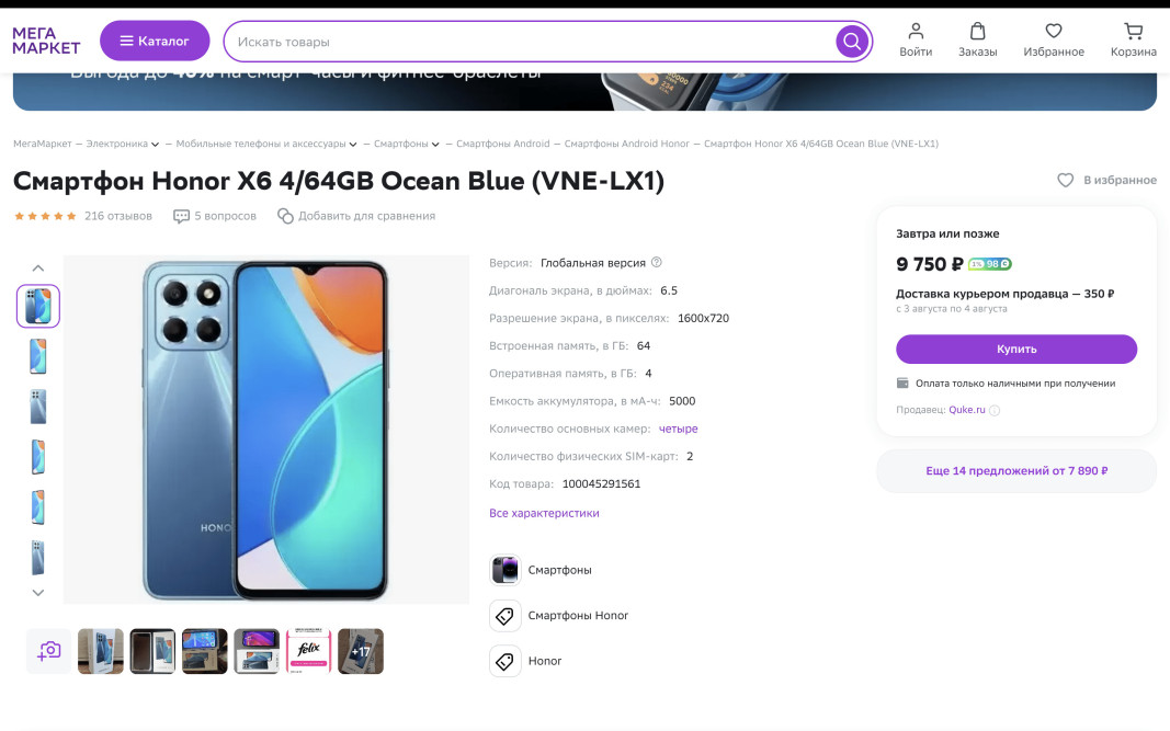 Посмотрите на сайт Сберовского Мегамаркета. Для того, чтобы разглядеть фотографии смартфона, нужно руками перебрать картинки из левой панели, ведь на миниатюрах ничего не видно. При этом информацию о товаре утрамбовали в две высоты окна. Никаких фоток в описании.