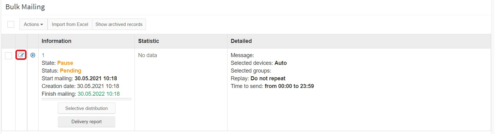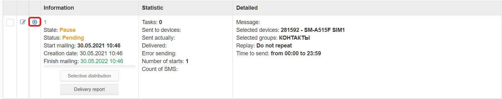 - Затем указать параметры рассылки.