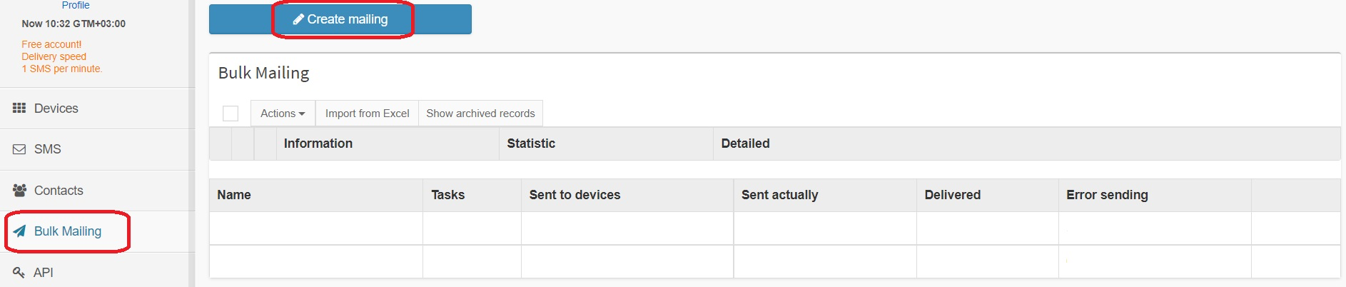 - Используя веб-интерфейс сервиса, загрузить в него базу данных номеров.