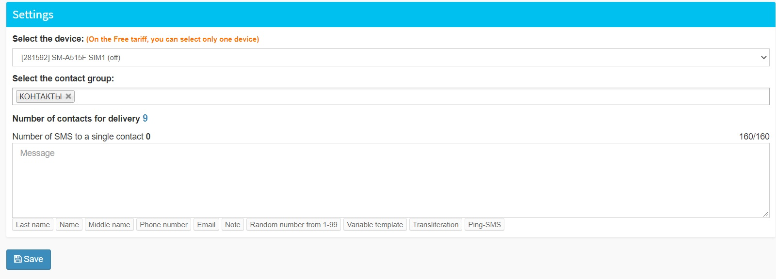 SMS Aero отличается удобным веб-интерфейсом с большим количеством настроек. В главном окне службы есть текстовое поле, в котором можно предпросматривать отправляемый текст и при необходимости редактировать его. Через это же поле можно создавать шаблоны для SMS, которые будут использоваться в дальнейшем.