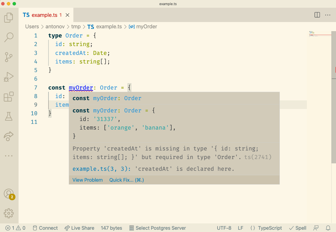 Пример, где определяется объект заказа типа остаётся без изменений. Получается, что одну и ту же задачу мы решили разными способами. Какому оператору отдавать предпочтение? В последних версиях TypeScript грань между операторами и стала тонкой (пример выше хорошо иллюстрирует это), но разница всё же есть.