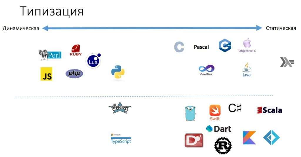 У каждого языка программирования свой подход к описанию типов. Существует условная классификация, какие виды типизации вообще есть и чем они различаются. Вот какой может быть типизация.