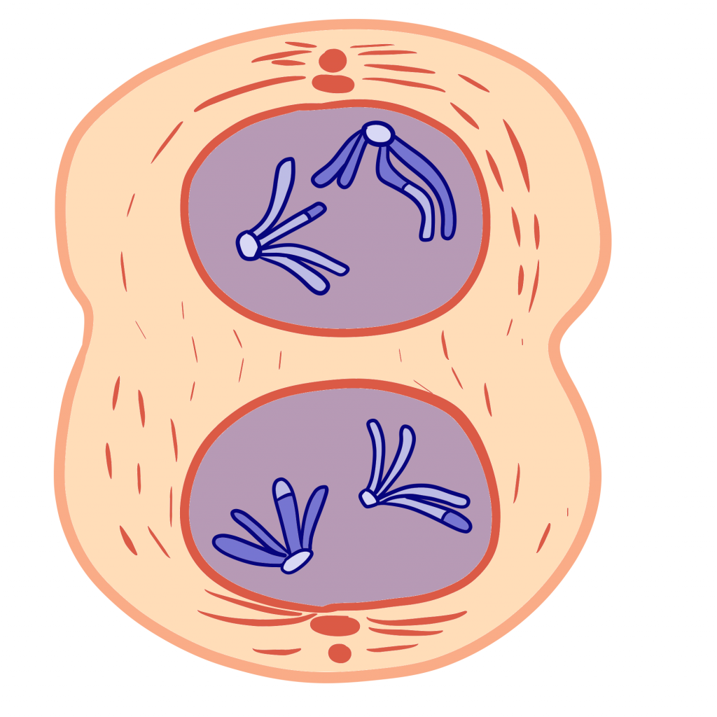 (если есть) – хромосомы деспирализируются, образуются ядрышко и ядерная оболочка, происходит распределение цитоплазмы (клетки, которые образовались, гаплоидны).