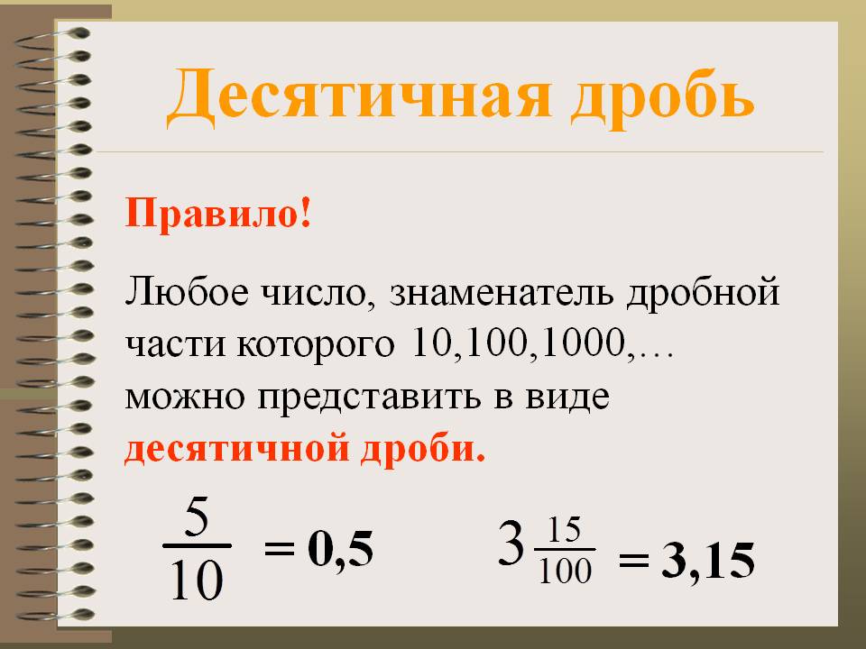 Помимо обыкновеной, существует еще и десятичная дробь.