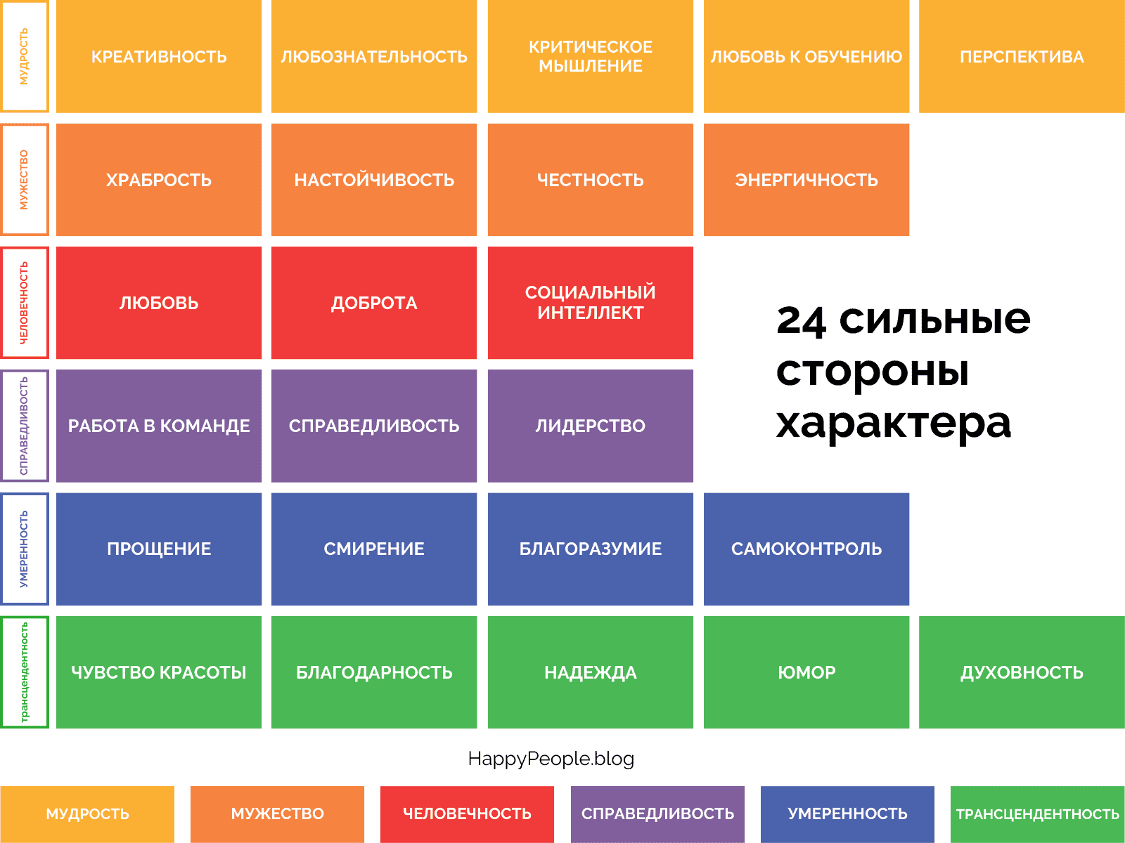 Классификация VIA: 6 добродетелей и 24 сильные стороны характера