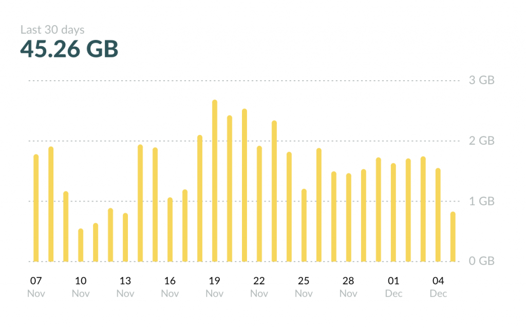 Трафик очень небольшой для России. У Honeygain есть официальный саб на Reddit — https://www.reddit.com/r/Honeygain/ . В течение трех месяцев я периодически следил за сабом и понял, что в очередной раз сервис больше востребован на западе. Так раздающие ( то есть мы) подбираются по геолокации ближе к компаниям, которые пользуются сервисом. Так меньше пинг. Вот пример трафика с дашборда парней с Великобритании.