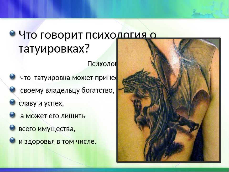 Психологические исследования показывают, что множественные татуировки могут иметь разные причины и мотивацию у разных людей. Они могут быть связаны с эмоциональным выражением, идентификацией с определенной группой или поддержкой определенных ценностей.