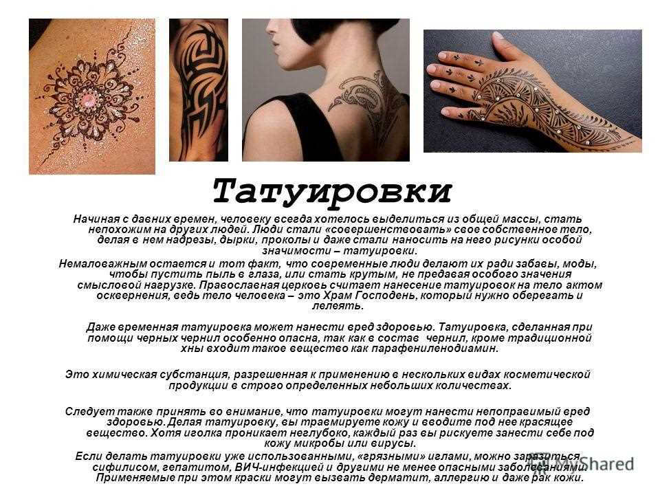 Таким образом, татуировки отображают богатство и многообразие культур мира, позволяют нам узнать больше о разных народах и их ценностях. Они являются уникальным искусством, которое украшает тело и передает истории, традиции и самую глубокую сущность человеческой личности.