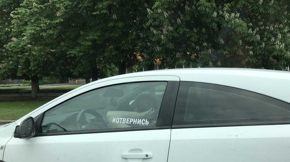 «Отвернись!» − приказывает девушка наклейкой на стекле своей машины