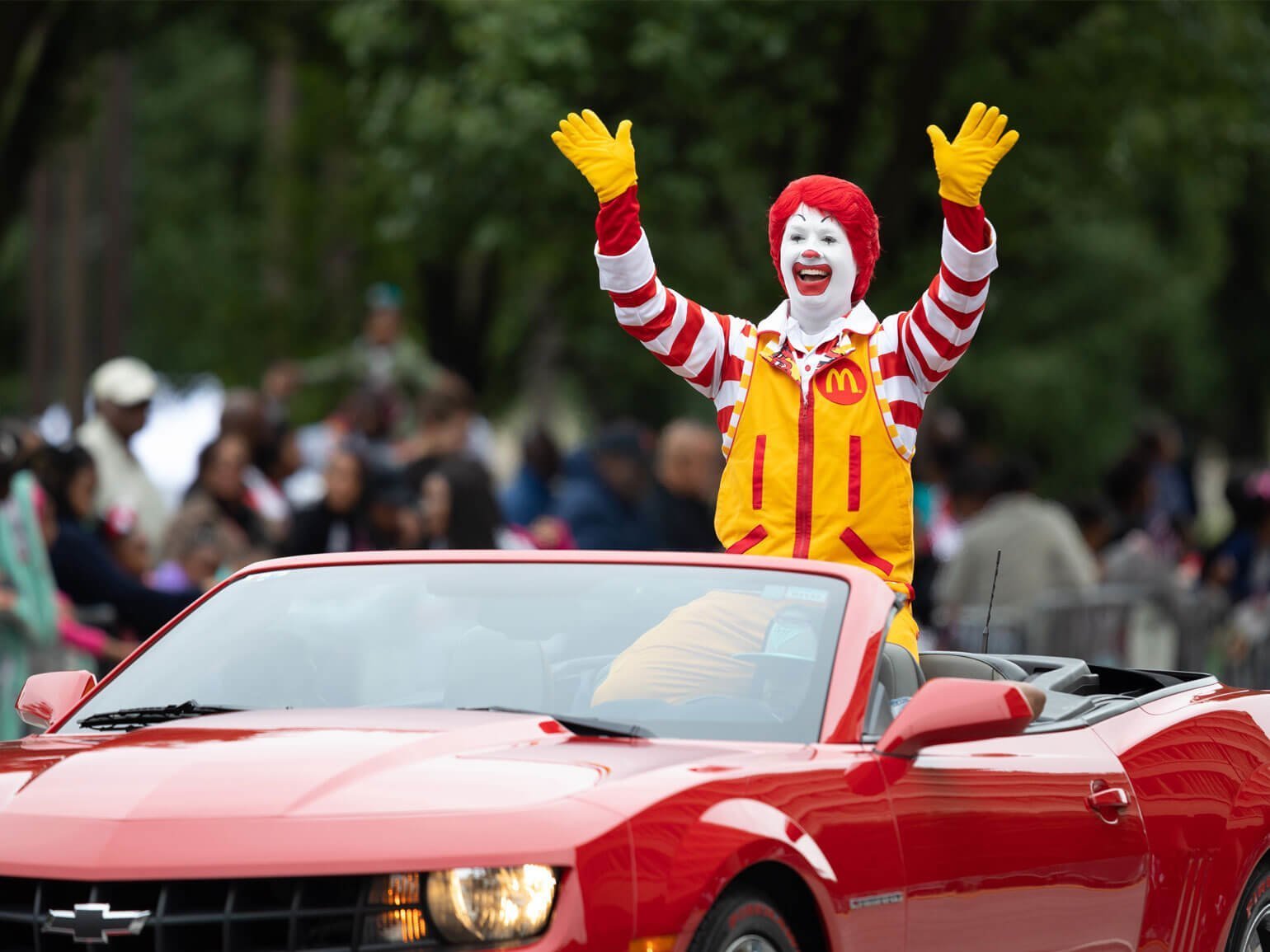 Актёр в костюме клоуна Рональда Макдональда на городском парадеФото: Roberto Galan / Shutterstock